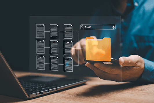 Con Access, puede cerrar la brecha que existe entre sus documentos digitales y en papel. Nuestras soluciones de administración de documentos pueden facilitar el uso compartido de documentos entre varias ubicaciones, integrarse con diversos sistemas ERP y HRIS para combinar metadatos, y automatizar sus procesos de revisión y aprobación de documentos. La EDMS innovadora incluso aplica procesos de administración de documentos inteligentes para que las búsquedas de archivos sean más eficientes, seguras y coherentes.